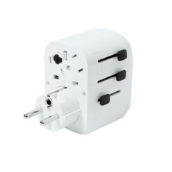 Adapter podróżny z nadrukiem Twojego logo, materiał: plastik, kolor: biały