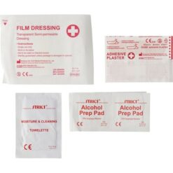 Apteczka w pokrowcu ze sznurkiem, 10 el., w tym: 5 plastrów, 2 płatki nasączone alkoholem, wilgotna chusteczka, chusteczka antyseptyczna oraz bandaż