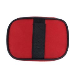 Apteczka w pokrowcu z główną przegrodą na zamek błyskawiczny, z tyłu posiada mocowanie na rzep umożliwiające przyczepienie np. do paska, zawiera 8 elementów stanowiących wyposażenie apteczki: 10 plastrów, 4 płatki nasączone alkoholem, 2 taśmy, 2 nieprzylegające opatrunki, 2 bandaże, 2 waciki, 2 chusteczki nasączone mydłem oraz nożyczki, produkt wykonany z poliestru 600D