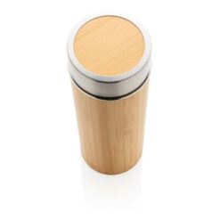 Bambusowa butelka termiczna 300 ml z nadrukiem Twojego logo, materiał: bambus, stal nierdzewna, stal, kolor: brązowy