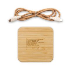 Bambusowa ładowarka bezprzewodowa 10W B’RIGHT, działa z urządzeniami posiadającymi możliwość ładowania indukcyjnego, 2 wyjścia USB 5V/1-2A, wejście USB-C, w komplecie korkowy kabel z 2 końcówkami USB-C wykonanymi z włókien słomy pszenicznej
