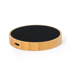 Bambusowa ładowarka bezprzewodowa 15W, grawer ukazuje podświetlaną powierzchnię, działa z urządzeniami posiadającymi możliwość ładowania indukcyjnego, wejście USB-C 5-9V/1.5-2A, antypoślizgowy spód, kabel USB-C w komplecie