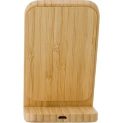 Bambusowa ładowarka bezprzewodowa 5W, stojak na telefon z nadrukiem Twojego logo, materiał: bambus, kolor: drewno
