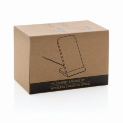 Ładowarka bezprzewodowa 5W, stojak na telefon, wykonana w 100% z bambusa z certyfikatem FSC (Forest Stewardship Council), bezprzewodowe ładowanie jest kompatybilne ze wszystkimi urządzeniami posiadającymi możliwość ładowania indukcyjnego, wejście micro USB 5V/2A, wyjście 5V/1A, 5W, kabel 150 cm w komplecie, produkt oraz akcesoria nie zawierają PVC, w pudełku FSC, ślad węglowy produktu: 1,02 kg CO2