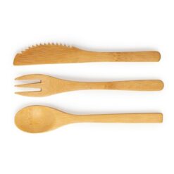 Zestaw sztućców bambusowych, w komplecie łyżka, nóż i widelec, w bawełnianym woreczku
