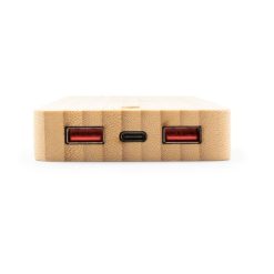 Bambusowy power bank B’RIGHT 8000 mAh, ładowarka bezprzewodowa 15W, działa z urządzeniami posiadającymi możliwość ładowania indukcyjnego, 5 diod wskazujących poziom naładowania, wejście USB-C, 2 wyjścia USB 18W, wyjście USB-C 19W, kabel USB-C w komplecie