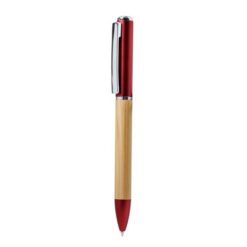 Bambusowy długopis, lampka LED z nadrukiem Twojego logo, materiał: plastik, bambus, kolor: czerwony
