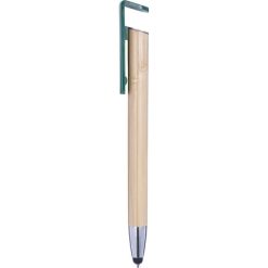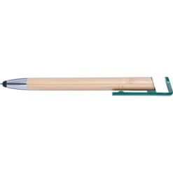 Bambusowy długopis, touch pen, stojak na telefon z nadrukiem Twojego logo, materiał: plastik, bambus, kolor: zielony
