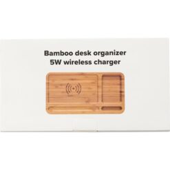 Bambusowy organizer na biurko, ładowarka bezprzewodowa 5W z nadrukiem Twojego logo, materiał: plastik, bambus, kolor: drewno