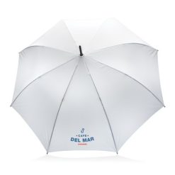 Bambusowy parasol automatyczny 27″ AWARE™ RPET z nadrukiem Twojego logo, materiał: metal, rpet, kolor: biały