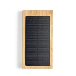 Bambusowy bezprzewodowy power bank 10000 mAh, ładowarka bezprzewodowa 5W, ładowarka słoneczna z nadrukiem Twojego logo, materiał: bambus, kolor: brązowy