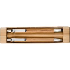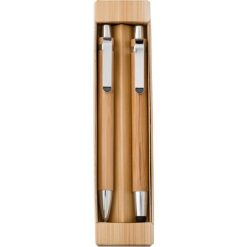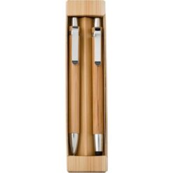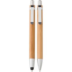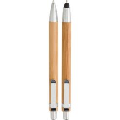 Bambusowy zestaw piśmienniczy, długopis touch pen i ołówek mechaniczny z nadrukiem Twojego logo, materiał: metal, karton, bambus, kolor: brązowy