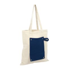 Bawełniana torba na zakupy z długimi uchwytami, składana, przednia kieszeń