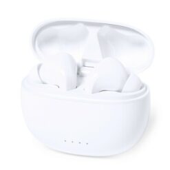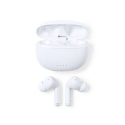 Bezprzewodowe słuchawki douszne ANC z nadrukiem Twojego logo, materiał: plastik, kolor: biały