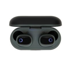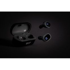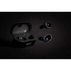 Bezprzewodowe słuchawki douszne TWS (True Wireless Stereo), BT 5.0, wykonane z ABS, funkcja odbierania połączeń, muzyka oraz rozmowy telefoniczne stereo, etui 500 mAh pełniące funkcję stacji ładującej w komplecie, akumulator słuchawek 50 mAh umożliwia odtwarzanie muzyki do 3 godzin, ponowne naładowanie za pomocą etui w 2 godziny, zasięg do 10 metrów, różne rozmiary nakładek dousznych w komplecie, ślad węglowy produktu: 0,7 kg CO2
