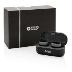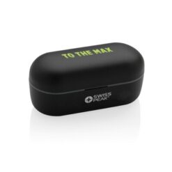 Bezprzewodowe słuchawki douszne TWS Swiss Peak z nadrukiem Twojego logo, materiał: plastik, kolor: czarny