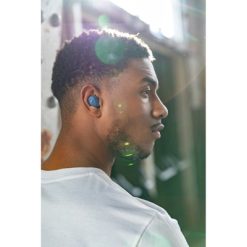 Bezprzewodowe słuchawki douszne, wykonane z ABS z recyklingu z certyfikatem RCS, całkowita zawartość materiałów z recyklingu obliczone na podstawie wagi całkowitej przedmiotu: 55%, funkcja redukcji szumów otoczenia podczas rozmów (ENC), wbudowane 2 mikrofony, funkcja odbierania połączeń, wodoodporne IPX4 (całkowita ochrona przed spryskiwaniem i zachlapaniem wodą z różnych kierunków z natężeniem do 10 litrów na minutę), dotykowy panel sterowania, do 6 godzin odtwarzania na jednym ładowaniu, etui ładujące zapewnia 20 godzin odtwarzania, nie zawiera PVC, opakowanie o zmniejszonej zawartości plastiku, ślad węglowy produktu: 0,66 kg CO2