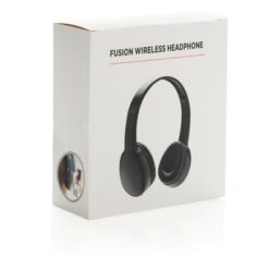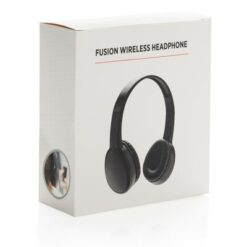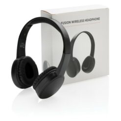 Bezprzewodowe słuchawki nauszne Fusion z nadrukiem Twojego logo, materiał: plastik, kolor: czarny
