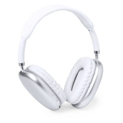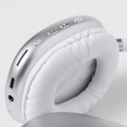 Bezprzewodowe słuchawki nauszne, radio z nadrukiem Twojego logo, materiał: plastik, kolor: biały