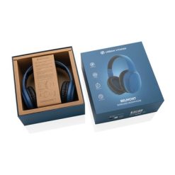 Bezprzewodowe słuchawki nauszne Urban Vitamin Belmond z nadrukiem Twojego logo, materiał: plastik, pu, kolor: niebieski
