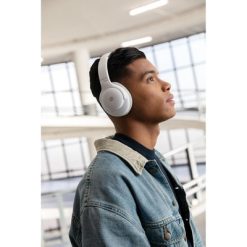 Nauszne słuchawki bezprzewodowe, składane, wbudowany mikrofon, funkcja odbierania połączeń, komfortowe nauszniki, czas odtwarzania na jednym ładowaniu do 35 godzin, nie zawiera PVC, opakowanie nie zawiera plastiku, ślad węglowy produktu: 2,47 kg CO2