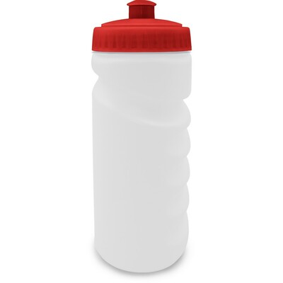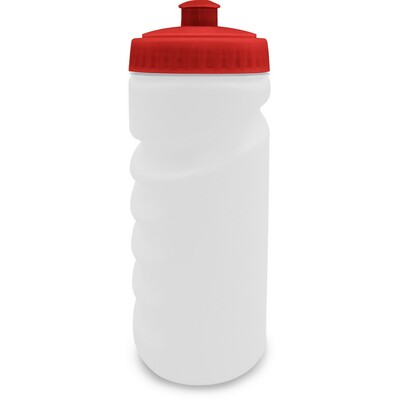 Bidon 500 ml z kolorową zakrętką, posiada zamknięcie w postaci dzióbka ułatwiającego picie oraz profilowanie, dzięki któremu bidon lepiej leży w dłoni, produkt wykonany z PE i PP