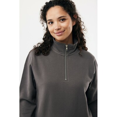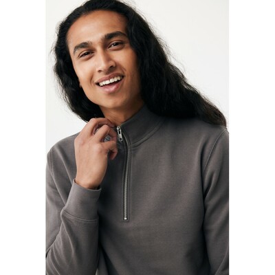 Bluza, unisex, długie rękawy, nowoczesny krój, kołnierz zapinany na zamek błyskawiczy, wykonana w 30% z bawełny z recyklingu i w 70% z bawełny organicznej o gramaturze 300 g/m2, posiada wbudowany znacznik AWARE™, który potwierdza wykorzystanie materiałów z recyklingu, posiada kod QR na metce, który prowadzi do cyfrowego paszportu produktu, 2% wpływów z każdego sprzedanego produktu jest przekazywane na rzecz Water.org