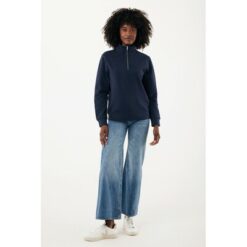 Bluza, unisex, długie rękawy, nowoczesny krój, kołnierz zapinany na zamek błyskawiczy, wykonana w 30% z bawełny z recyklingu i w 70% z bawełny organicznej o gramaturze 300 g/m2, posiada wbudowany znacznik AWARE™, który potwierdza wykorzystanie materiałów z recyklingu, posiada kod QR na metce, który prowadzi do cyfrowego paszportu produktu, 2% wpływów z każdego sprzedanego produktu jest przekazywane na rzecz Water.org