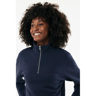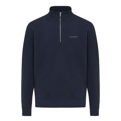 Bluza, unisex, długie rękawy, nowoczesny krój, kołnierz zapinany na zamek błyskawiczy, wykonana w 30% z bawełny z recyklingu i w 70% z bawełny organicznej o gramaturze 300 g/m2, posiada wbudowany znacznik AWARE™, który potwierdza wykorzystanie materiałów z recyklingu, posiada kod QR na metce, który prowadzi do cyfrowego paszportu produktu, 2% wpływów z każdego sprzedanego produktu jest przekazywane na rzecz Water.org
