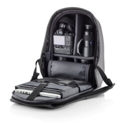 Plecak chroniący przed kieszonkowcami Bobby Hero Regular, wodoodporny i odporny na przecięcia materiał, wykonany z materiału RPET, ukryte zamki i kieszenie, wewnątrz miękkie przegrody na laptopa 15,6″ i tablet do 12,9″, zintegrowany port USB do ładowania telefonów (power-bank nie jest dołączony), odblaskowe paski zwiększające widoczność, pasek do zamocowania na walizce, wzór zastrzeżony®, ślad węglowy produktu: 6,68 kg CO2