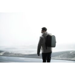 Plecak chroniący przed kieszonkowcami Bobby Hero Small, wodoodporny i odporny na przecięcia materiał, wykonany z przyjaznego środowisku materiału RPET, ukryte zamki i kieszenie, wewnątrz miękkie przegrody na laptopa do 13,3″ i tablet do 12,9″, zintegrowany port USB do ładowania telefonów (power-bank nie jest dołączony), odblaskowe paski zwiększające widoczność, pasek do zamocowania na walizce, wzór zastrzeżony®, ślad węglowy produktu: 6,28 kg CO2