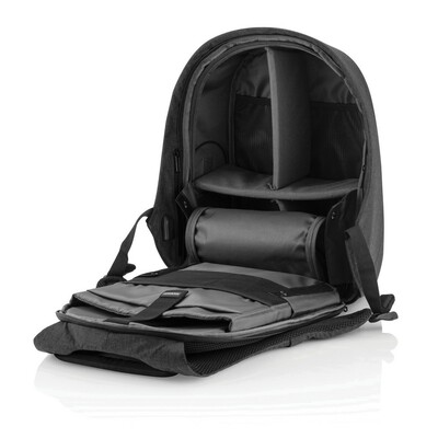 Plecak chroniący przed kieszonkowcami Bobby Hero XL, wodoodporny i odporny na przecięcia materiał, wykonany z przyjaznego środowisku materiału RPET, ukryte zamki i kieszenie, wewnątrz miękkie przegrody na laptopa do 17″ i tablet do 12,9″, zintegrowany port USB do ładowania telefonów (power-bank nie jest dołączony), odblaskowe paski zwiększające widoczność, pasek do zamocowania na walizce, wzór zastrzeżony®, ślad węglowy produktu: 7,57 kg CO2