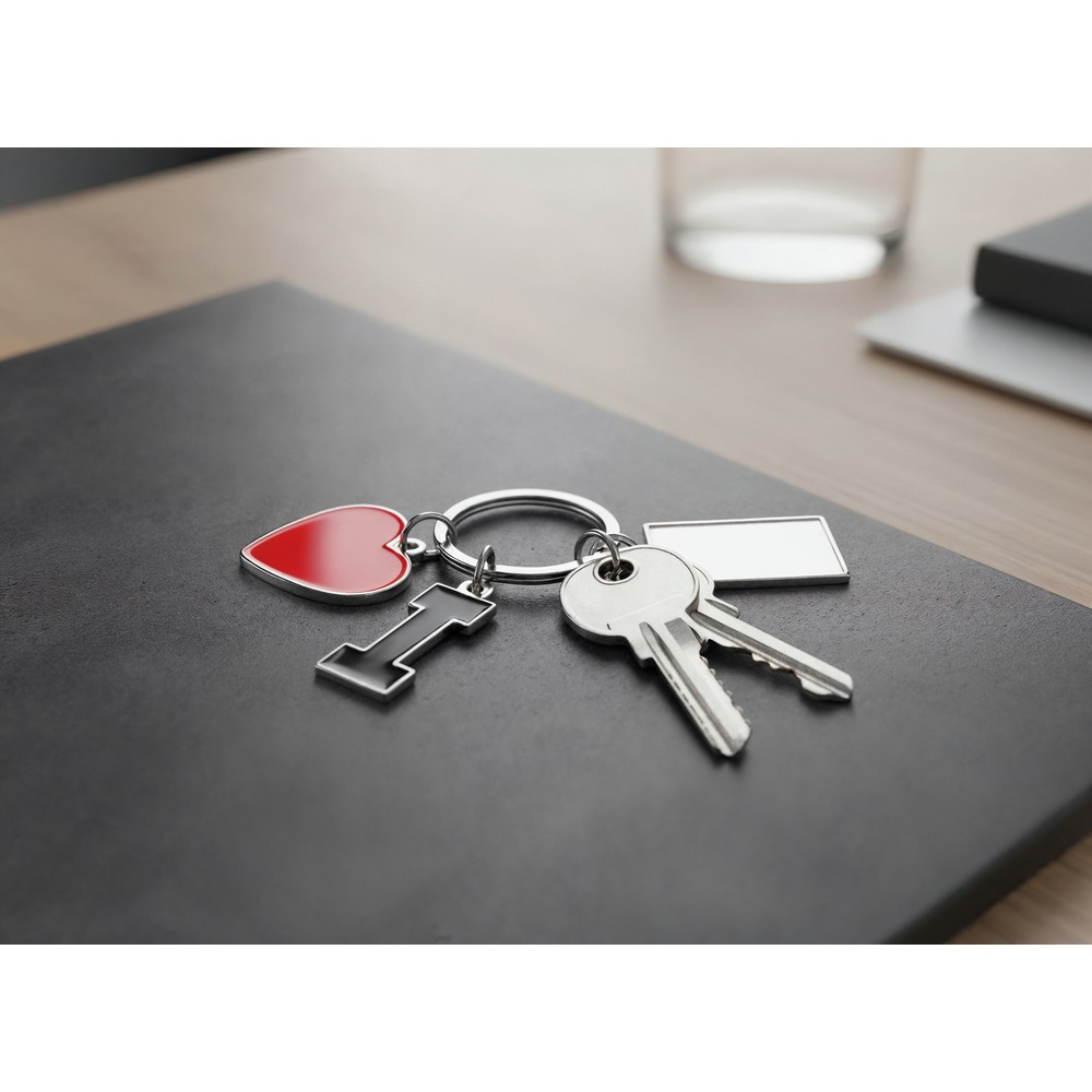Brelok do kluczy „I love …” z metalową plakietką | Lydus z nadrukiem Twojego logo, materiał: metal, kolor: srebrny