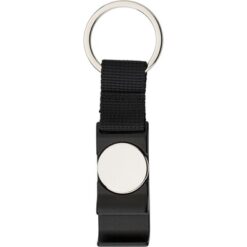 Brelok do kluczy, żeton do wózka na zakupy, otwieracz do butelek z nadrukiem Twojego logo, materiał: metal, aluminium, poliester, kolor: czarny