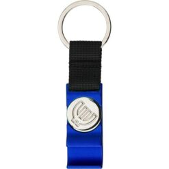 Brelok do kluczy, żeton do wózka na zakupy, otwieracz do butelek z nadrukiem Twojego logo, materiał: metal, aluminium, poliester, kolor: niebieski