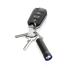 Brelok do kluczy, latarka LED, wykonana z aluminium z recyklingu, zasięg wiązki światła do 3 m, certyfikat RCS zapewnia w pełni certyfikowany łańcuch dostaw materiałów pochodzących z recyklingu, całkowita zawartość materiałów z recyklingu obliczona w oparciu o wagę całkowitą przedmiotu: 50%, baterie w komplecie