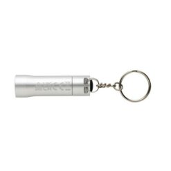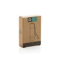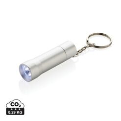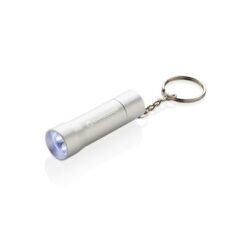 Brelok do kluczy, latarka LED, wykonana z aluminium z recyklingu, zasięg wiązki światła do 3 m, certyfikat RCS zapewnia w pełni certyfikowany łańcuch dostaw materiałów pochodzących z recyklingu, całkowita zawartość materiałów z recyklingu obliczona w oparciu o wagę całkowitą przedmiotu: 50%, baterie w komplecie