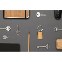 Brelok do kluczy, wykonany z metalu z recyklingu z certyfikatem RCS i bambusa, całkowita zawartość materiałów z recyklingu obliczona na podstawie wagi całkowitej produktu: 76%