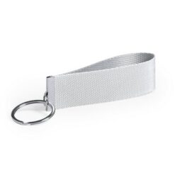 Brelok do kluczy z zawieszką z nadrukiem Twojego logo, materiał: metal, poliester, kolor: biały
