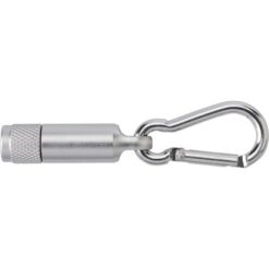 Brelok karabińczyk, lampka LED z nadrukiem Twojego logo, materiał: metal, plastik, aluminium, kolor: srebrny