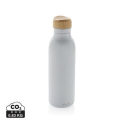 Butelka sportowa 600 ml Avira Alcor, stal nierdzewna z recyklingu z nadrukiem Twojego logo, materiał: bambus, stal nierdzewna, stal, kolor: biały