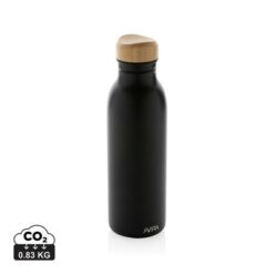 Butelka sportowa 600 ml Avira Alcor, stal nierdzewna z recyklingu z nadrukiem Twojego logo, materiał: bambus, stal nierdzewna, stal, kolor: czarny