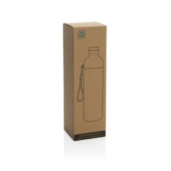 Butelka sportowa 600 ml, wykonana z materiałów z recyklingu, całkowita zawartość materiałów obliczona na podstawie wagi całkowitej przedmiotu: 96%, zalecana wyłącznie do zimnych napojów, wyłącznie mycie ręczne, w pudełku z papieru kraftowego z certyfikatem FSC®, 2% wpływów z każdego sprzedanego produktu z kolekcji Impact jest przekazywane na rzecz Water.org