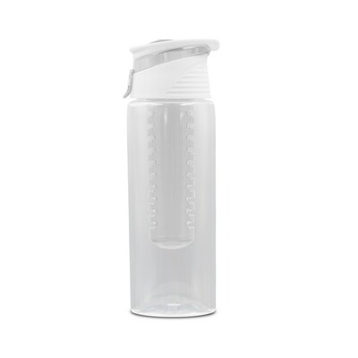 Butelka sportowa 700 ml Air Gifts, posiada pojemnik na lód lub owoce umożliwiający nadanie wodzie smaku według własnych preferencji, kolorowa zakrętka ze składanym uchwytem ułatwiającym noszenie, butelka przeznaczona wyłącznie do zimnych i niegazowanych napojów, produkt wykonany z plastiku