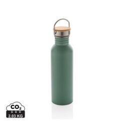 Butelka sportowa 700 ml, wykonana ze stali nierdzewnej, zakrętka z bambusa i stali nierdzewnej, z uchwytem, wyłącznie mycie ręczne, ślad węglowy produktu: 2,03 kg CO2