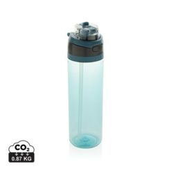 Butelka sportowa 800 ml, posiada słomkę i szeroki otwór do picia, wieczko z blokadą, uchwyt, wykonana z RPET, całkowita zawartość materiałów z recyklingu obliczona na podstawie wagi całkowitej produktu: 47%