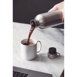Butelka termiczna 1000 ml, podwójne ścianki z próżnią pomiędzy, wykonana ze stali nierdzewnej 18/8, zakrętka z uchwytem, utrzymuje temperaturę napojów gorących do 20 godzin oraz zimnych do 18 godzin