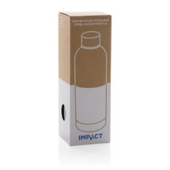 Butelka termiczna 500 ml, wykonana z materiałów pochodzących z recyklingu z certyfikatem RCS, całkowita zawartość materiałów z recyklingu obliczona na podstawie wagi całkowitej przedmiotu: 80%, podwójne ścianki z próżnią pomiędzy, minimalistyczne wykończenie, w opakowaniu z papieru kraftowego, utrzymuje temperaturę napojów gorących do 5 godzin oraz zimnych do 15 godzin