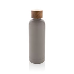 Butelka termiczna 500 ml Wood, stal nierdzewna z recyklingu z nadrukiem Twojego logo, materiał: pp, stal nierdzewna, stal, kolor: szary