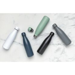 Butelka termiczna 500 ml, podwójne ścianki ze stali nierdzewnej z próżnią pomiędzy, pasuje do większości uchwytów na kubek, utrzymuje temperaturę napojów gorących do 20 godzin oraz zimnych do 15 godzin